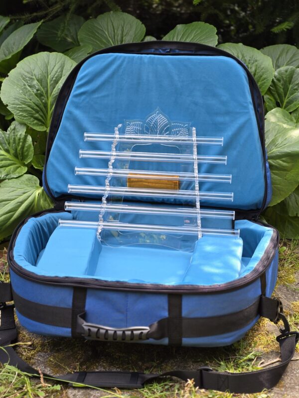 The instrument comes with a special bag for transport and storage. Equipped with a shoulder strap and a large pocket for a mallet and accessories. Each wall is reinforced and the interior is lined with waterproof velvet that beautifully showcases the instrument. Bag dimensions are approx. 62 x 47 x 17 cm (24.5 x 18.5 x 6.5 in).