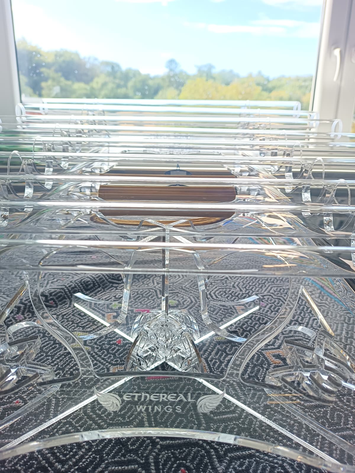 The ~Solfeggio Crystal Harp~ harp is completely transparent. The body is made of acrylic, and all additional elements allow light to pass through, which makes it feel more ethereal.